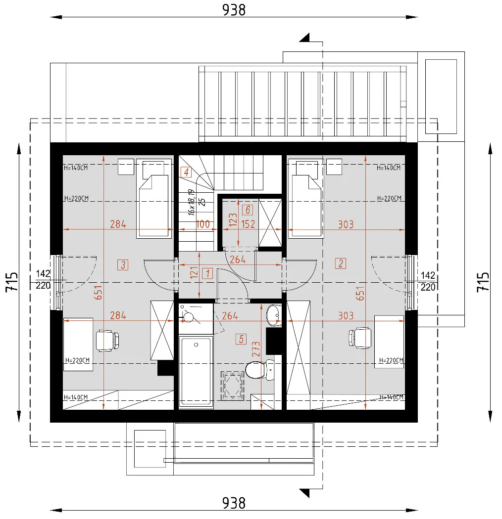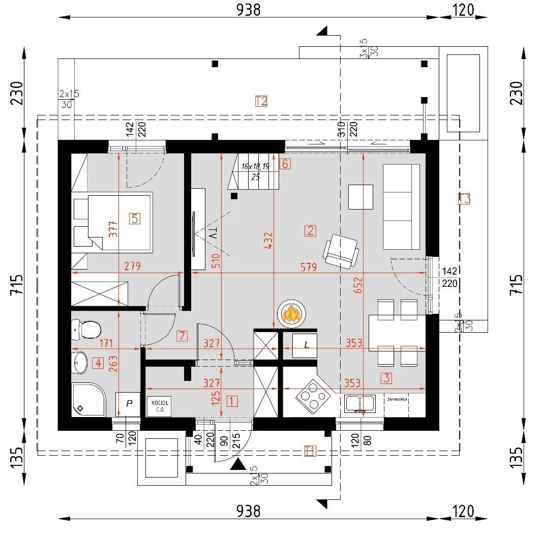 Wymiary: 7,15 m (Dł) x 9,38 m (Sz) x 7,71 m (W)